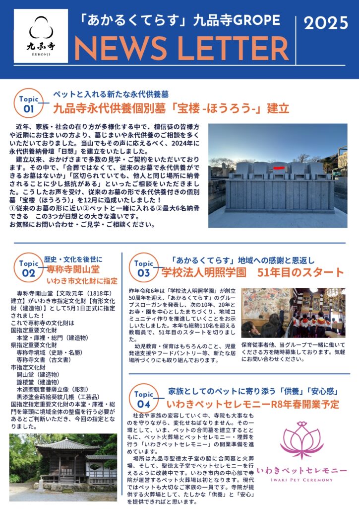 九品寺グループ 令和7年ニュースレター発行のお知らせ
